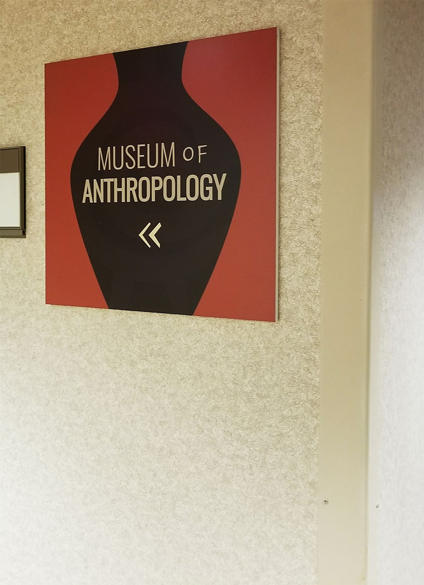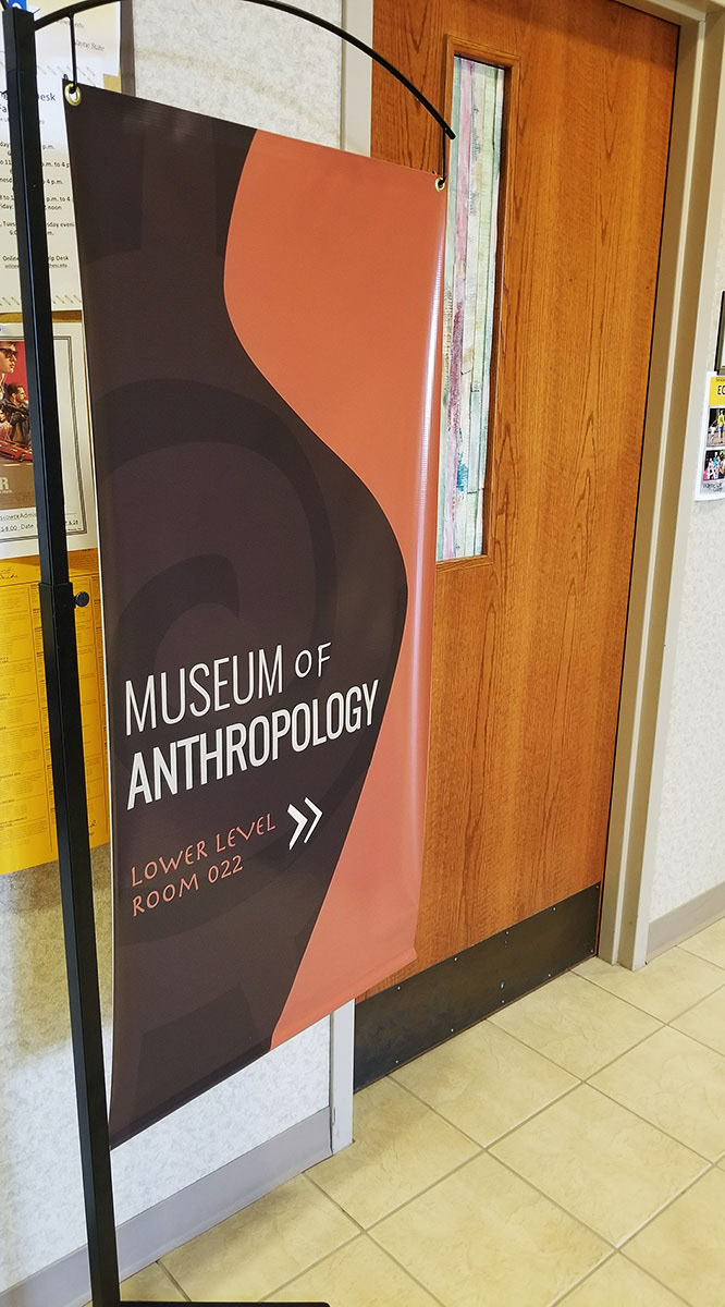 Students Andrew Gelbart and Taylor Burbage and Professor Joshua Piersanti collaborated with the Museum of Anthropology at Wayne State College to create large interior and exterior visitor signs for Connell Hall.